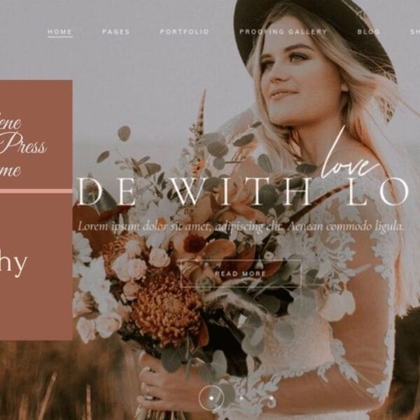 Solene WordPress theme has been designed to help you share your portfolio online and also promote your services in a stylish online environment, Solene theme for creating wedding photography websites look great. Not only that, but it has all the useful features to help you promote your services and land more clients.